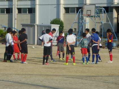 サッカー部は、顧問の先生から、ちょうど指導を受けて話を聞いています。