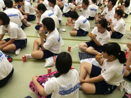 修学旅行二日目 夜レクの後、夜食が出ました。