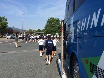 > 帰校時刻は、予定どおり、午後7時頃を予定していますが、次の休憩地点で、もう一度お知らせいたします。