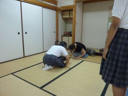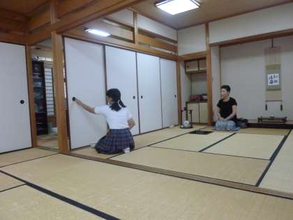 子どもたちは、今日もとても緊張感いっぱいで、お辞儀の仕方、ふすまの開け方も指導が入ります。