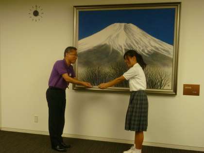 区役所では、吉田区長さん自ら応対いただき、受け取っていただきました。