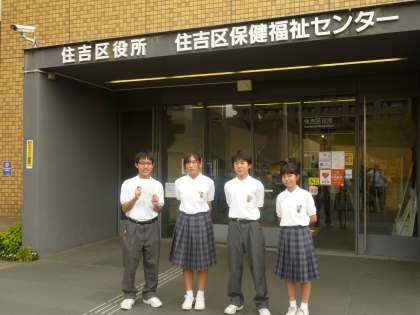 生徒会では、集まった「熊本支援募金」、129,700円を区役所を通じて、日本赤十字社に提出するため、住吉区役所を訪れました。