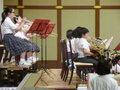 今日は、その総会のあと、本校吹奏楽部の演奏を聴いていただきました。