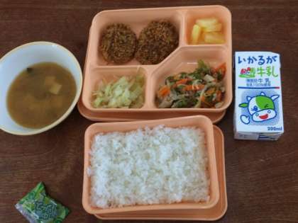 今日の風景5/27 本日の給食「とんかつとみそ汁」です。