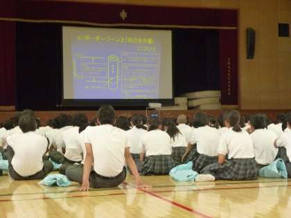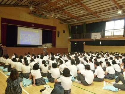今日は、進路主事の先生から、スライドを使ってわかりやすく、同じ情報を学年としていただき、進路を考える最初のよい機会となりました。