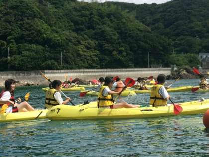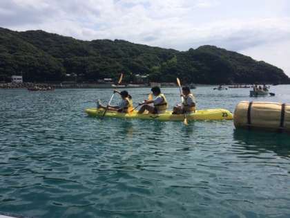 慣れてきたら沖を目指します。2人(または3人)の息が合わないとなかなか思うように進みません。