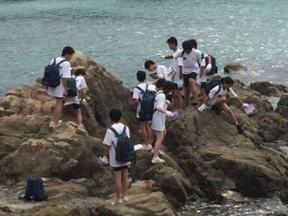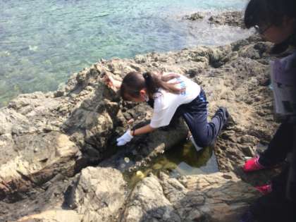 磯観察では、小魚、カニ、イソギンチャクなど、自然をいっぱい見ることができます。