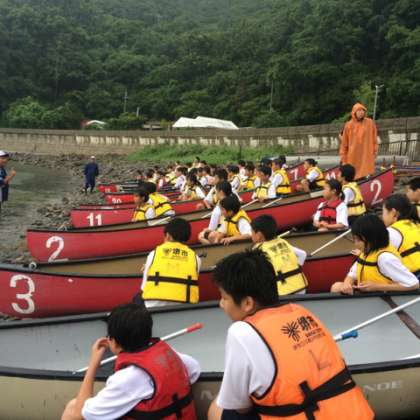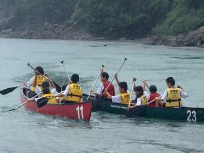 カヌーは、ボート型になっていて、5〜6人で、力を合わせて、漕いで行きます。