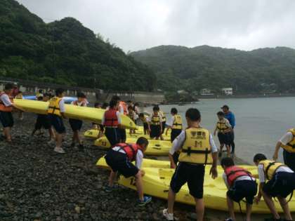 カヤックは、カヌーに比べると、薄いボードのようなボートになります。