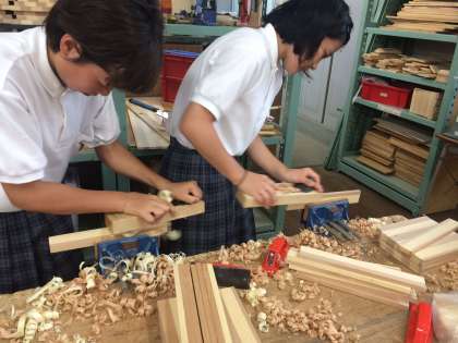 のこぎりや、かんなを使ってきれいなパーツを作って行きます。