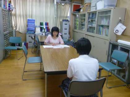 本校では、英語検定の二次対策として、本物の試験官の先生に来ていただいて、全員に模擬面接を実施しています。