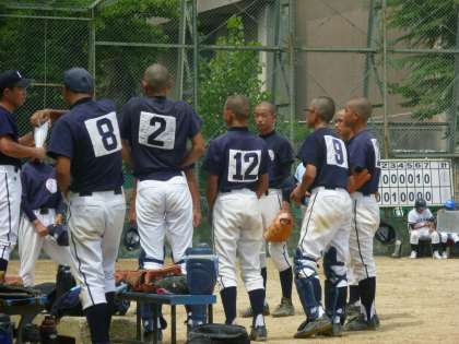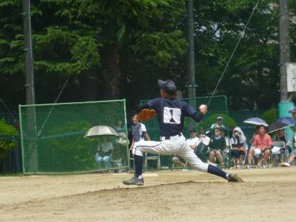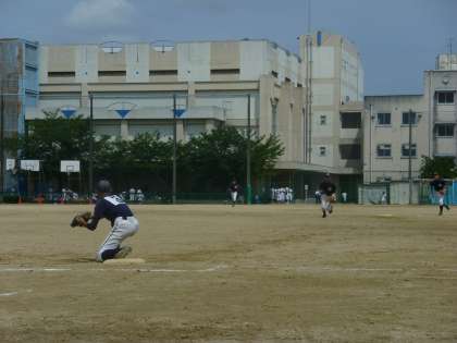 野球部の公式戦は、雨のため1日順延となり、10日(日)、場所を吹田第5中学に変えて行われました。