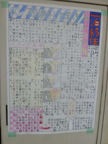 学年の廊下には、何枚もの壁新聞が掲示され、楽しかった思い出がよみがえってきます。