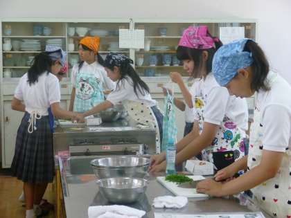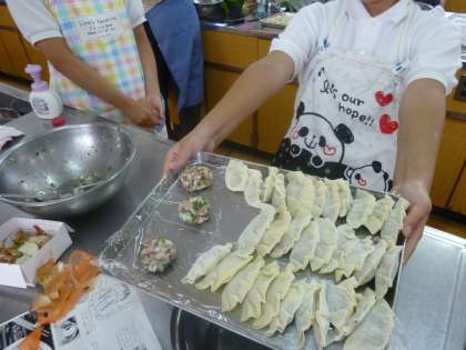 今日の風景7/16 ハンドメイド部「調理実習−餃子とチンゲンサイの卵スープ」1