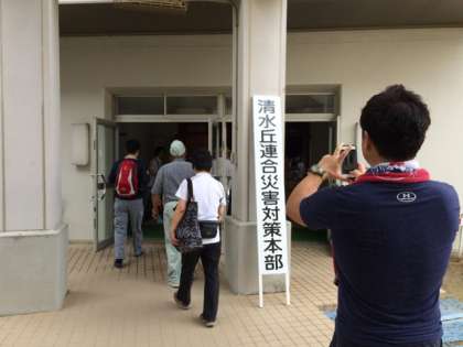 本校校区、清水丘町会では、今日17日(日)各町会ごとに集合し、実際に小学校へ避難する、災害時避難訓練を行われました。