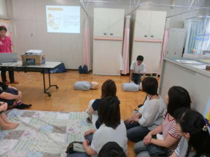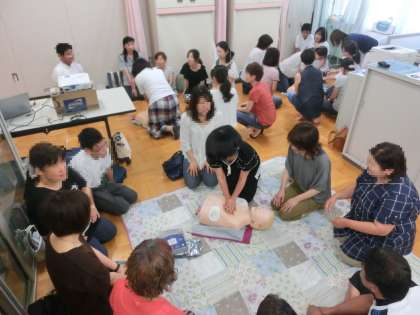 中心に実際に心肺蘇生やAEDを使用した実技をしました。
