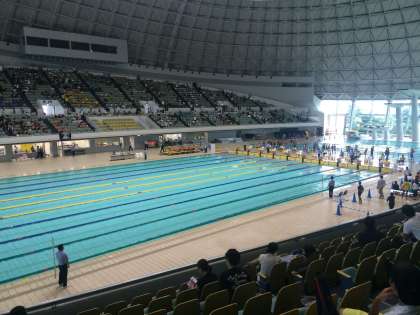 門真市にありますラクタブドーム(なみはやドーム)では、大阪中学校水泳大会が行われています。