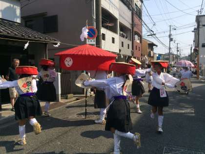 この保存会には、住吉大社のある長峡(ながお)町会に住む子どもたちを中心に、本校の子どもたちも踊りに加わっています。
