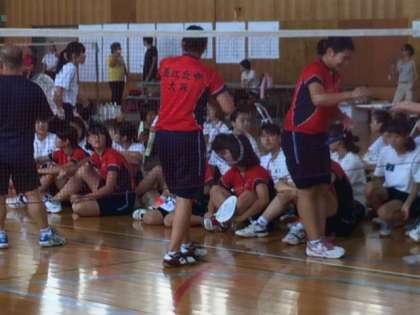 *団体戦は、ペア→シングル→ペア、で戦い、各前後半合わせて29ポイント先に取った方が勝ち、勝ち抜くには、学校チームでその内の二勝する必要があります。