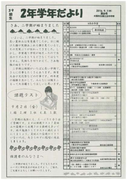 2年生学年だより、9月号です。