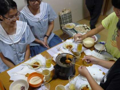みんな、学校とは違って、とても打ち解けて家庭料理や浴衣の着付けを楽しんでいました。