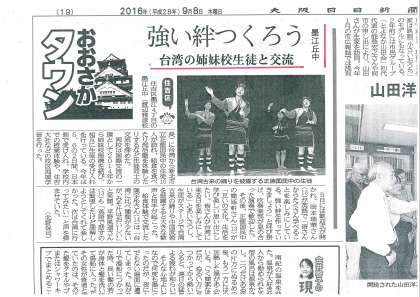 9/8 「台湾正徳中国際交流が新聞ニュースになっています。」