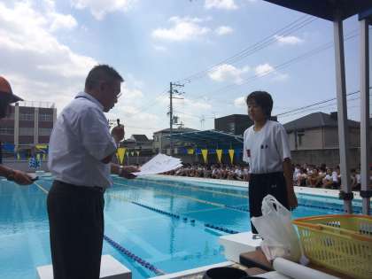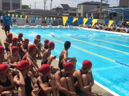 1年生水泳大会、最後はクラス対抗のリレー種目です。