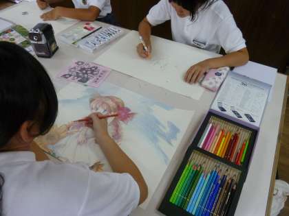 また美術部では、各行事(文化祭、体育大会など)のパンフレットの表紙画も担当しているそうです。