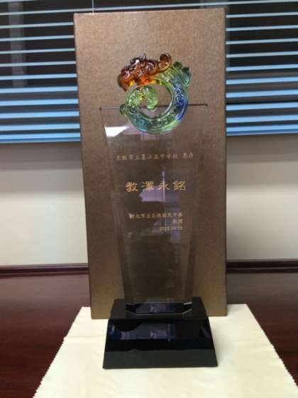 2.クリスタル盾「瑠璃が埋め込まれた感謝トロフィー」