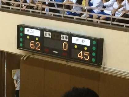 そして、第4ピリオドの笛が鳴り、本校がリードしたまま、62−45で勝利を収めました。これで、本校男子バスケットボール部は、大阪市150校の中学校の頂点に立つことができました。見事な優勝でした。応援ありがとうございました。この後は、念願の大阪府大会優勝目指して頑張ります。