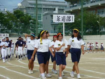 文芸部は、現在、写真作品などのほかに競技かるたにも取り組んでいます。大会出場や入賞をめざしてトレーニングに励んでいます。 女子バスケットボール部は、連日のたくさんの練習時間を誇っています。ブロック優勝を経験し市総体出場を目標に頑張っています。茶道部では、師範の先生の指導を受け、本格的な茶道を学び、心も養っています。