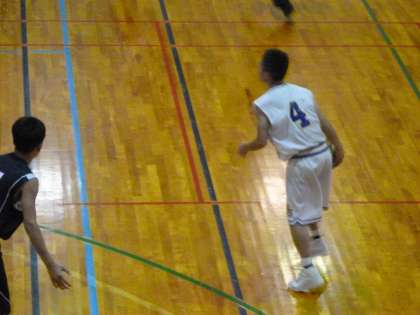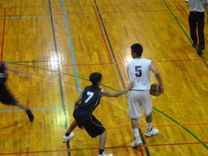 大阪市秋季総体優勝で府大会に進出しています、本校男子バスケットボール部は、1回戦を迎えました。対戦相手は強豪で常連の、枚方市樟風中学校です。出だしリードを許す展開となりました。