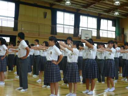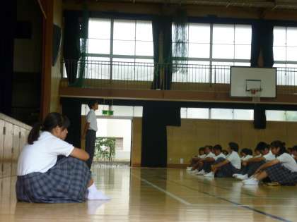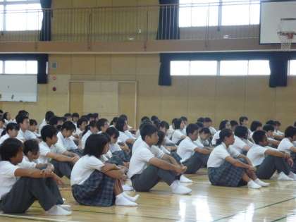 3年生では、10月最初の学年集会が、定例水曜日行われました。3年生では、明日に進路に重要な「大阪市統一テスト」を控え、特に進路の話が行われました。