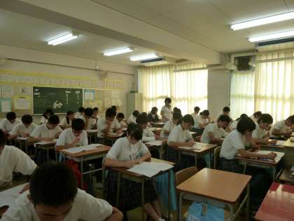 3年生では進路に向けた、大阪市統一テストが行われています。これは同じテスト問題で学力測定することで、大阪市での個人の学習成績(通知表・内申成績など)の公平さを保たせるためのテストです。子どもたちも真剣な表情で、いよいよ3年生の進路も佳境に入ってきました。