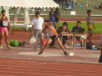 長居で開かれています陸上の大阪府秋季総体は、二日目、決勝を迎えました。本校はここまで、多くの決勝進出を果たしています。今日は、その決勝競技が行われます。進出種目は、砲丸投げ、走り幅跳び、3000mなどです。そして多く種目で入賞を獲得しました。