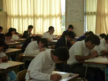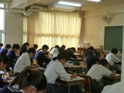 中間テストも二日目(最終日)を迎えました。2年生の教室でも緊張感の中、1時間目が始まりました。