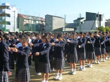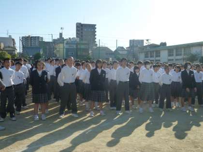 秋晴れの晴天下、10月3回目の全校集会を行いました。今週は、いよいよ文化祭があります。気持ちを込めて成功させたいと思います。