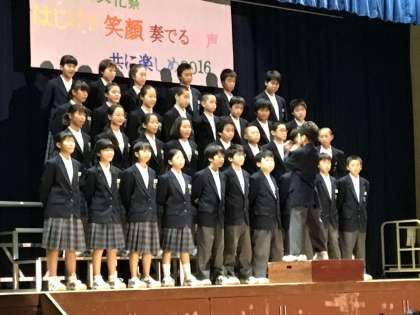 続いて、1年後半は、4組、3組です。どのクラスの懸命の合唱で、中学生として初めての合唱とは思えないくらい上手です。審査の結果、金賞4組、銀賞1組、銅賞5組となりました。