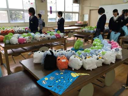 次は、パソコン部作品上映、体育課授業発表(組体操演技)、家庭科授業作品(ぬいぐるみ製作)です。