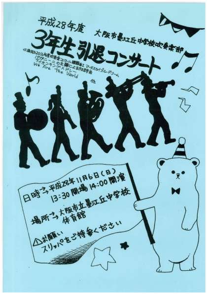 11/4 吹奏楽部 「3年生引退コンサート」のお知らせ