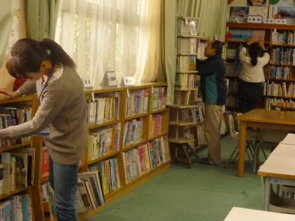 今日は、本校の図書ボランティアさんの活動日です。図書室補助員の方とともに、本棚の本の整理に力を貸していただきました。ぜひ、生徒の皆さんには、1冊でも多くの本を読んでもらいたいです。