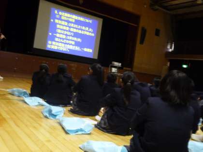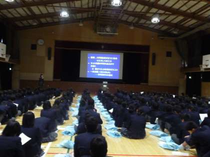 先週の保護者の皆さまを対象にした進路説明会に続き、今日6時間目、生徒の皆さんを対象にした「進路説明会」を開催しました。ここでは、具体的に進路の先生からお話があり、来週からの進路懇談に向けて準備が着々と進んでいます。