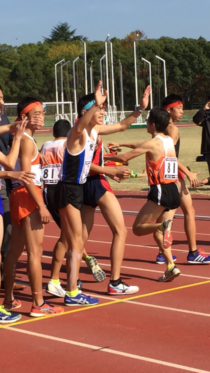 この大会は、20kを6区6人でタスキをつないで行きます。本校は2区以降も、上位キープを続けます。