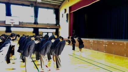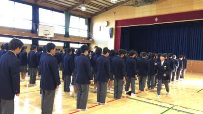 土曜日は1年生の学年集会の日です。今日も8:25の予鈴前には、全員がそろって始めることができました、遅刻する人はいません。