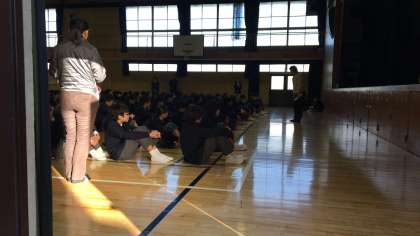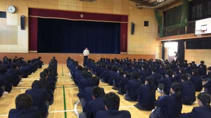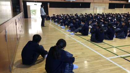 水曜日、3年生の学年集会がありました。さすが3年生も、予鈴8時25分前に全員が集合しました。