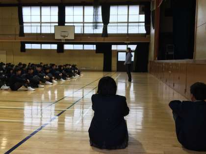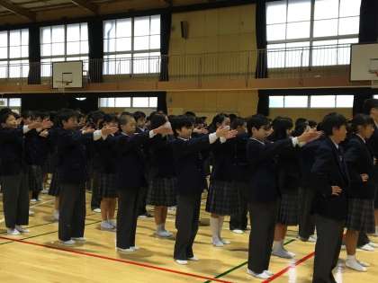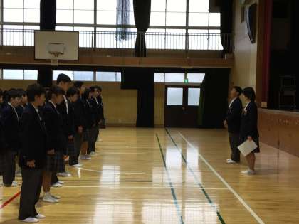 8時25分、全員整列し静寂の中、予鈴のチャイムとともに、学年代表さんの号令がかかりました。上級生に負けない立派な学年集会です。