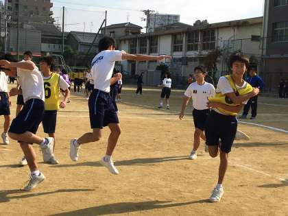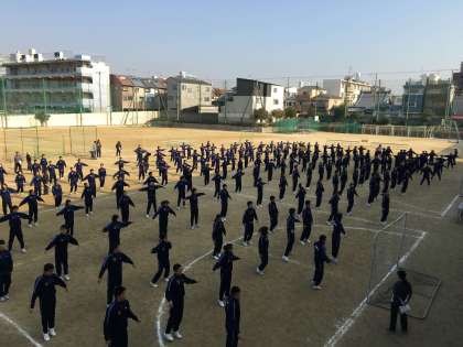 3年生では、今日から4時間授業になり、懇談会が始まります。その午前中、3、4時間目、球技大会が行われました。全員出場のハンドボール大会です。全体体操から気合満々です。