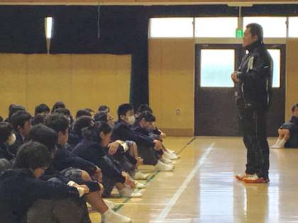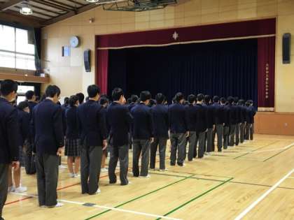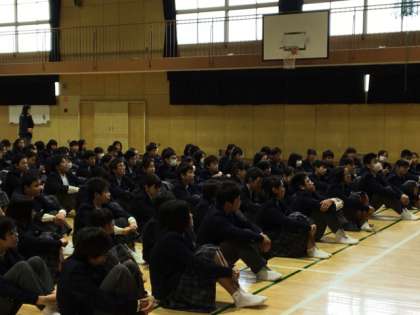 8時25分、3年生の集会も、さすが遅刻者なしで始まりました。学年の先生のお話を静かに聞き入っています。