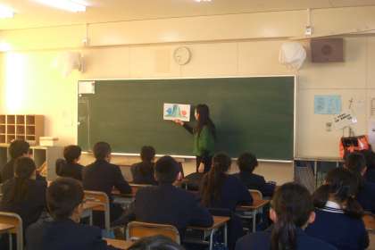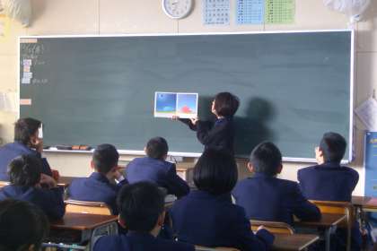朝の読書の時間の「読み聞かせ」は1年生に移りました。ボランティアさんの朗読に、全館が静かに聞き入っています。