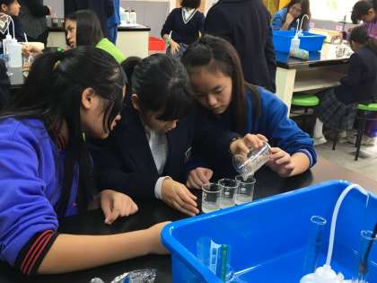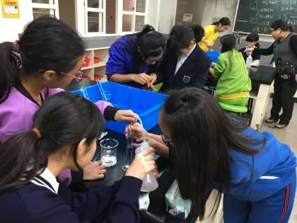 続いて、4時間目は、「理科」の授業で溶液を作る作業を学びました。正徳の皆さんが親切に教えてくれます。